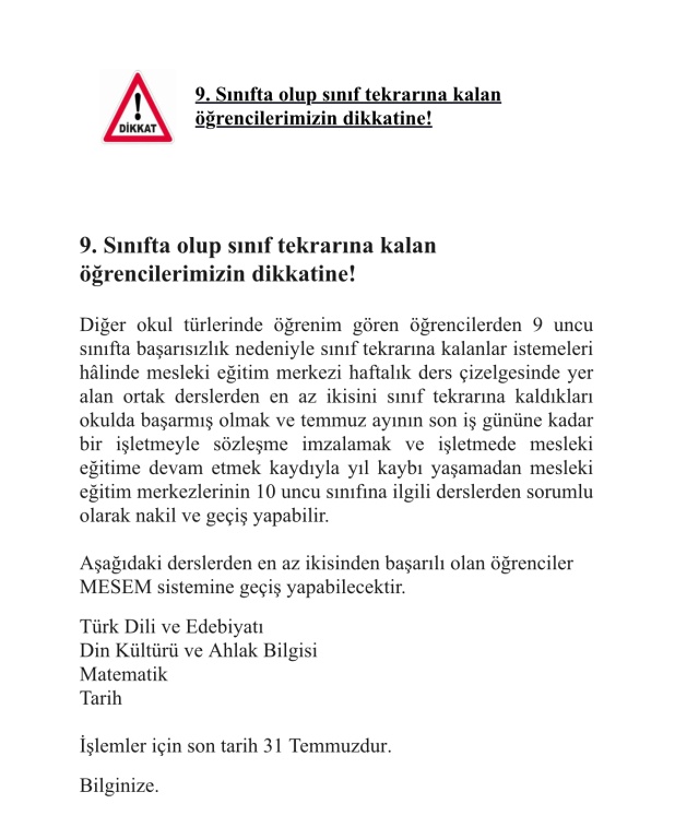 MESEM geçişleri için bilgi almak isteyen öğrencilere duyurumuzdur!!!